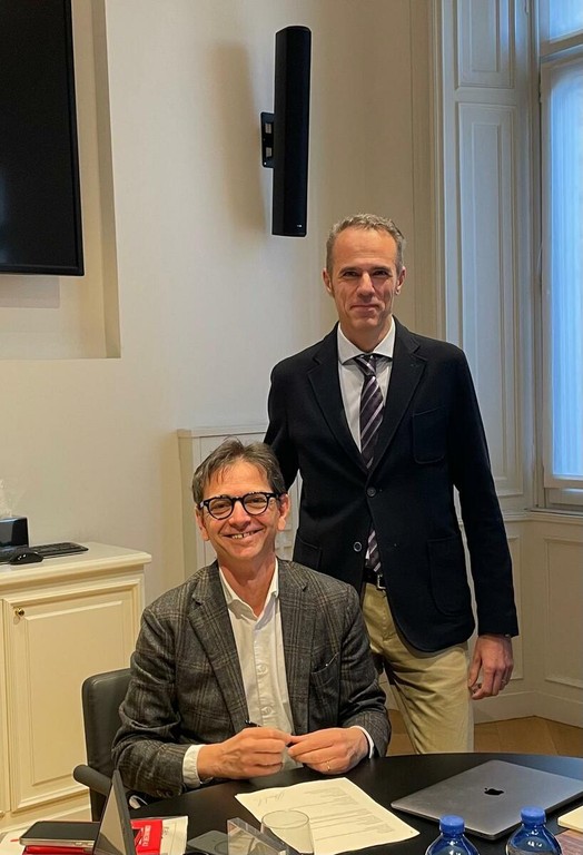 [Il presidente di Cogesi Emanuele Di Caro e Garuglieri di Iccrea Banca alla firma del contratto]