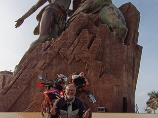 All’andata ho preso il traghetto a Genova per Tangeri in Marocco, in compagnia di due miei amici, Gianpietro e Bruno. Con loro ho condiviso i primi tre giorni di viaggio e, arrivati ad Agadir (Marocco), le nostre strade si sono divise. Ho continuato da solo verso Dakar (Senegal), con l’obiettivo di scattare una foto davanti al Monumento al Rinascimento africano.