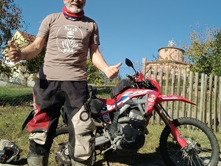 Merita un grande grazie proprio mia moglie, perché la moto CRF 300 è un suo regalo per il mio compleanno di 2 anni fa, ma il dono più grande è aver avuto la libertà di fare un viaggio senza limiti di tempo. Grazie anche a Silvia Gullino, che mi ha dato la possibilità di raccontarlo e condividere le mie emozioni con tutti voi.