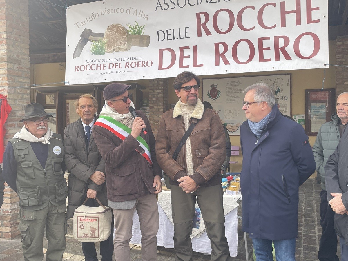 Tutti per il tartufo e il tartufo per tutti, purché sia bianco d’Alba, e se poi sconfina nel Roero o nel Monferrato, sarà pur sempre il benvenuto, augurio quest’ultimo tributato domenica 30 novembre soprattutto al conduttore televisivo di Canale 5 Valerio Staffelli che, dalle mani del sindaco di Monteu Roero Paolo Rosso, ha ricevuto il Tartufo Bianco d’Alba Rocche del Roero 2025.