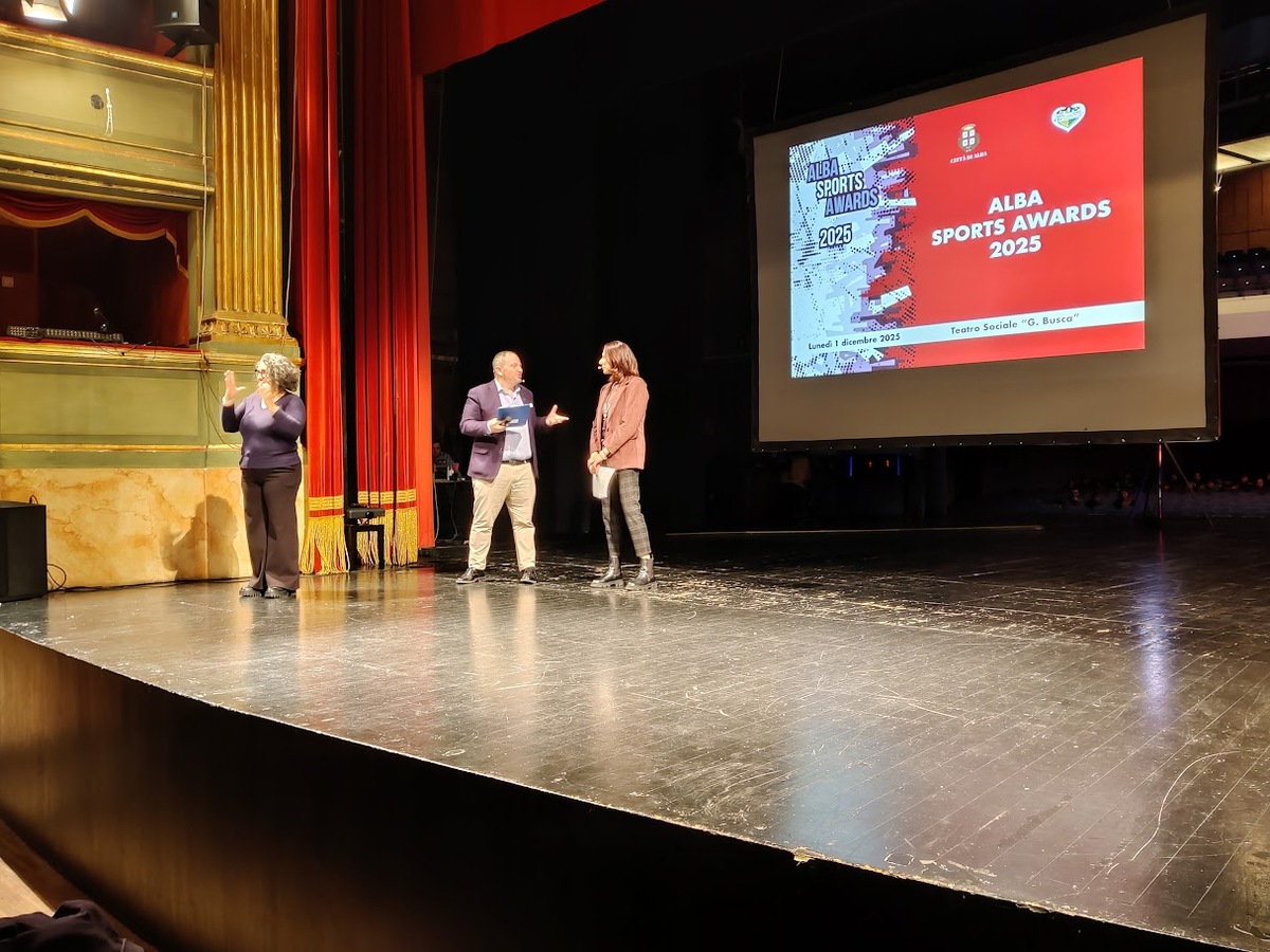 Partecipata cerimonia 'Alba Sports Awards 2025', ieri lunedì 1° dicembre, nella sala storica del Teatro Sociale 'G. Busca' di Alba, alla presenza delle autorità comunali, provinciali e regionali competenti in materia sportiva e di tante società e associazioni che promuovono e praticano sport nel territorio.