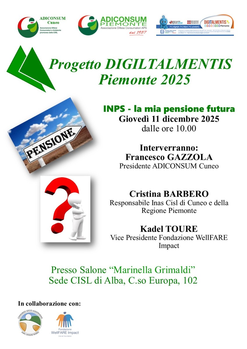 Nel corso dell’incontro verrà approfondito il tema “INPS – la mia pensione futura”, con l’obiettivo di fornire ai partecipanti strumenti utili per orientarsi tra servizi digitali e informazioni previdenziali.