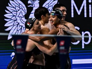 Nella singolare gara a squadre (gareggiano due atleti e altrettante atlete per ogni nazione, a discrezione dei tecnici l’ordine dei sessi) gli azzurri Francesco Lazzari, Simone Cerasuolo, Silvia di Pietro e Sara Curtis hanno fermato il cronometro sul 1’36”09 che è valso loro il primo posto e anche il nuovo record dei campionati. L’argento è andato all’Olanda (1’36”18), sopravanzata dall’Italia solo nel finale grazie all’incredibile ultima frazione della giovane saviglianese; bronzo per la padrona di casa Polonia (1’36”98).