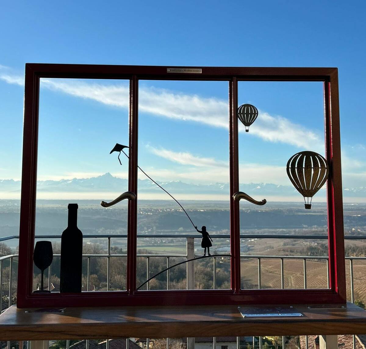 La nuova finestra, in ferro rosso, è stata installata in via Marchesi Oreglia, nel punto panoramico conosciuto come Arco del Monviso, uno dei balconi più affascinanti del paese. Qui il paesaggio si apre verso le Langhe, le vigne e l’arco alpino, che nei giorni limpidi appare netto all’orizzonte.