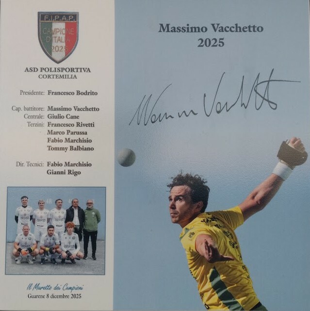 Sono seguite le premiazioni nella sala Anfossi del municipio di Guarene, dove il giornalista e speaker ufficiale della pallapugno Fabio Gallina ha coordinato la consegna delle targhe, andate al mister Gianni Rigo, al ds Fabio Marchisio e a tutti i componenti della squadra campione d’Italia 2025, Tommy Balbiano, Marco Parussa, Francesco Rivetti (recentemente infortunato ad un ginocchio … cordiali auguri per una pronta guarigione), Giulio Cane e naturalmente il capitano Massimo Vacchetto.