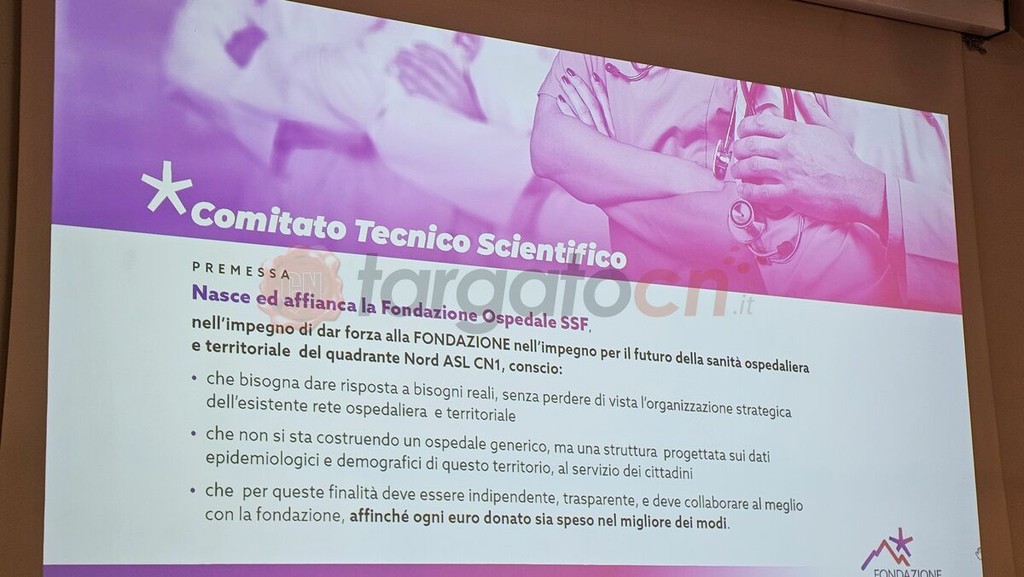 Baldassarre Doronzo presidente del Comitato tecnico scientifico ha illustrato i componenti e i compiti del comitato partendo dall'affiancare la Fondazione Ospedale SSF nell'impegno di “darle forza nella sua attività per il futuro della sanità ospedaliera e territoriale del quadrante Nord Asl Cn1, conscio che: serve dare risposta a bisogni reali, senza perdere di vista l'organizzazione strategica dell'esistente rete ospedaliera e territoriale, che non si sta costruendo un ospedale generico, ma una struttura progettata sui dati epidemiologici e demografici di questo territorio, al servizio dei cittadini e che per queste finalità deve essere indipendente, trasparente, e deve collaborare al meglio con la fondazione, affinché ogni euro donato sia speso nel migliore dei modi”.
