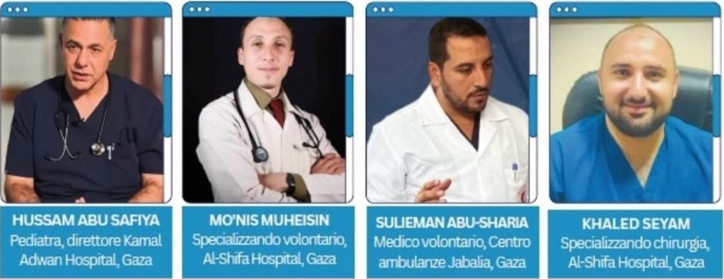 Tra i sanitari detenuti figurano il pediatra Hussam Abu Safiya, direttore del Kamal Adwan Hospital, e altri medici e specializzandi degli ospedali di Gaza.