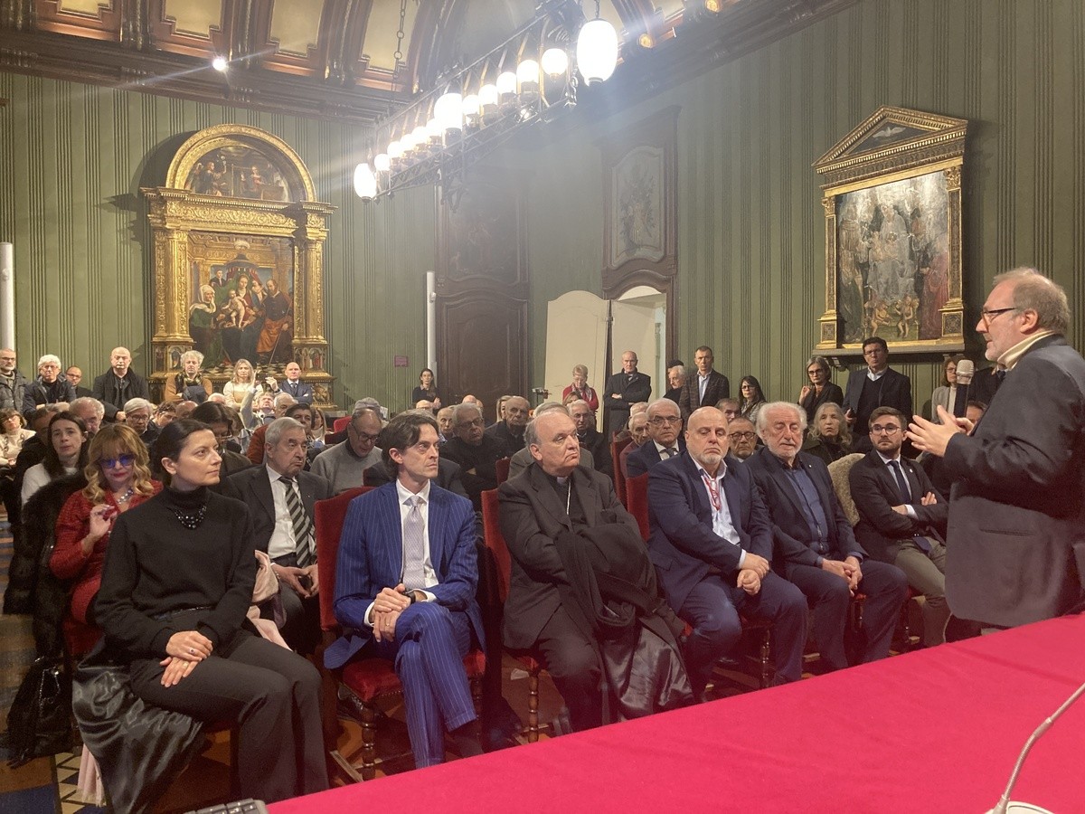"Non capita spesso di ricevere in donazione un’opera così importante per la nostra città – ha dichiarato il sindaco Alberto Gatto – Ringrazio la professoressa Bergui per la sua grande generosità. Ringrazio anche gli ex sindaci Tomaso Zanoletti, Giuseppe Rossetto e Maurizio Marello per essere qui, insieme al vescovo monsignor Marco Brunetti. Ci tenevamo a presentare al pubblico questa magnifica opera e a ringraziare pubblicamente la dottoressa per questa importantissima donazione. Un’opera identica si trova nella chiesa di San Giovanni. Dopo il restauro, la tela sarà esposta in questa sala consigliare di fronte al quadro del Macrino d’Alba opera del Quattrocento. La preziosa tela arricchisce la nostra città. La signora ha voluto lasciare un ricordo della sua famiglia ad Alba".