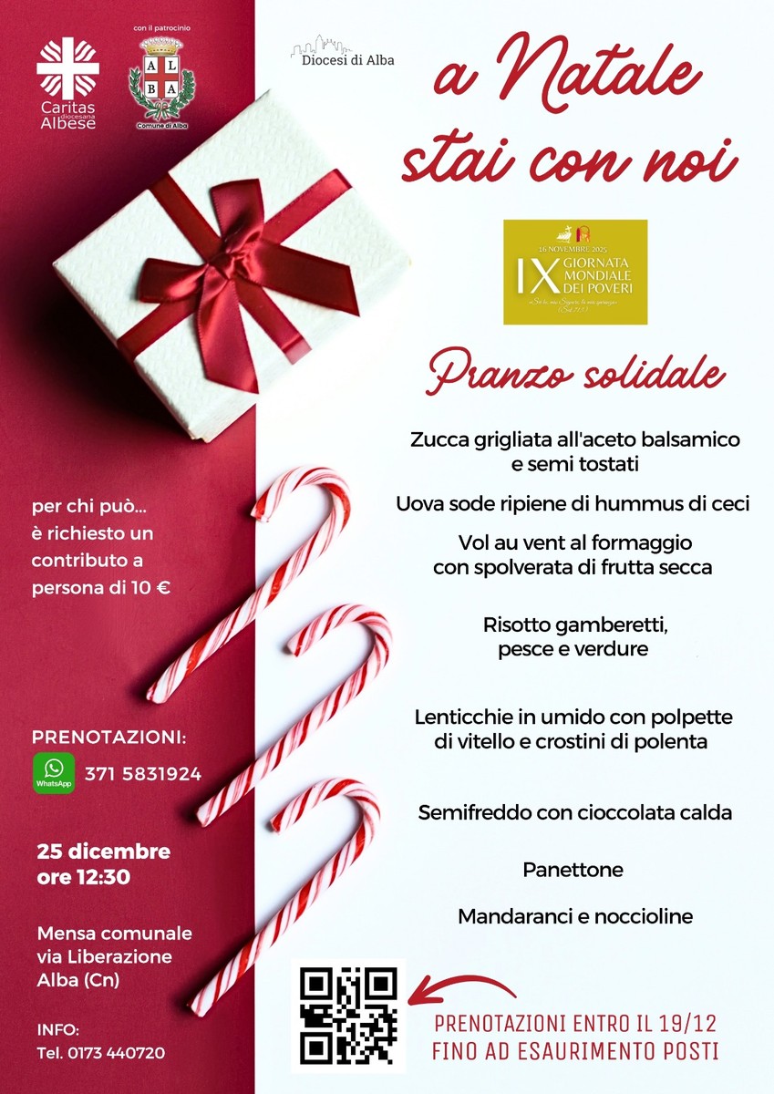 Trasformare il giorno di Natale in un’occasione di incontro e prossimità. È questo l’obiettivo del pranzo solidale promosso dalla Caritas diocesana di Alba, in programma giovedì 25 dicembre 2025 alle ore 12.30 presso la mensa comunale di via Liberazione, con il patrocinio della Città di Alba.