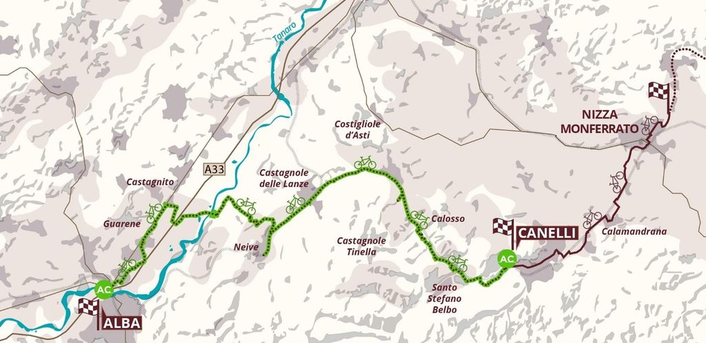 Il tracciato, articolato in sei tratte, prenderà avvio a ovest in prossimità del sottoviadotto dell’A33 ad Alba, non lontano dalle sponde del Tanaro, per concludersi a est a Canelli, nel Parco Giancarlo Scarrone. Non un semplice itinerario turistico, ma un vero asse ciclabile pensato per servire cittadini e visitatori: alla meraviglia dei paesaggi collinari, infatti, si affianca opportunamente il collegamento con scuole, stazioni ferroviarie, impianti sportivi e nodi di interscambio.