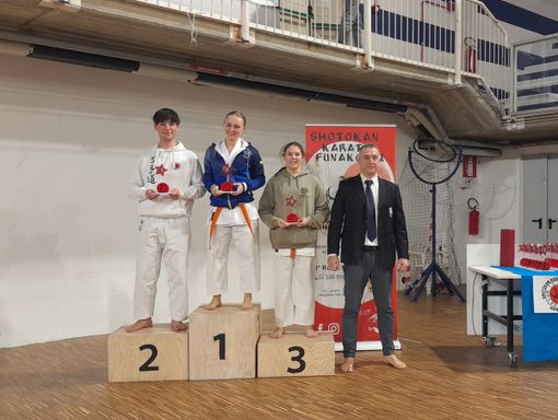 Infine tre podi per Brignone Francesco Hoi, argento nel kata maschile cinture nere seniores, oro al termine di una combattutissima gara di alto livello nel kumite e terza posizione nel primo trofeo Funakoshi, che vedeva sfidarsi i vincitori della categoria cinture nere maschile e femminile insieme.