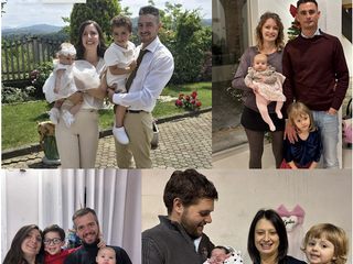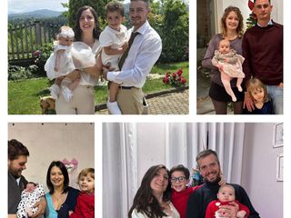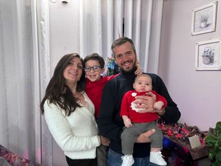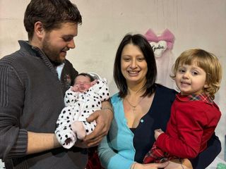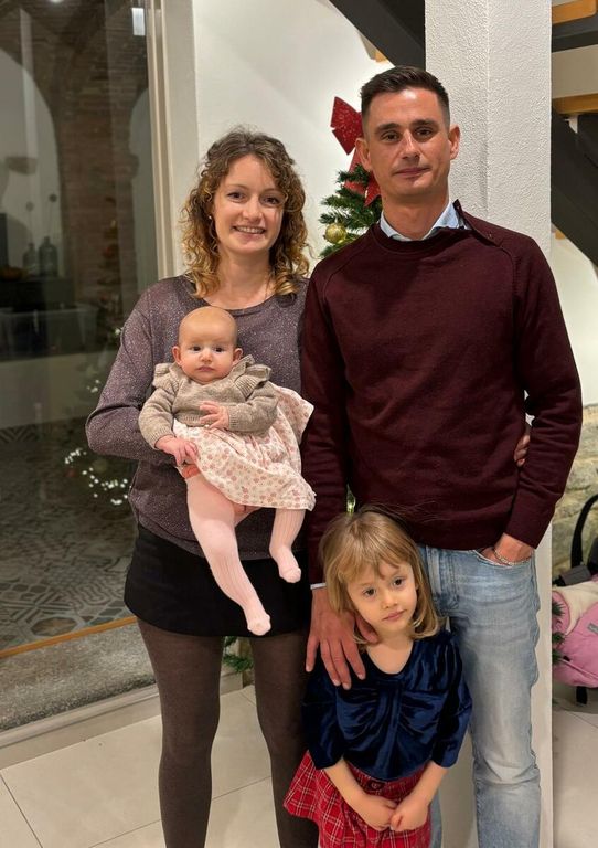 [Azzurra Urgese, nata a gennaio 2025 con mamma Monica, papà Daniele e il fratello Dominik]