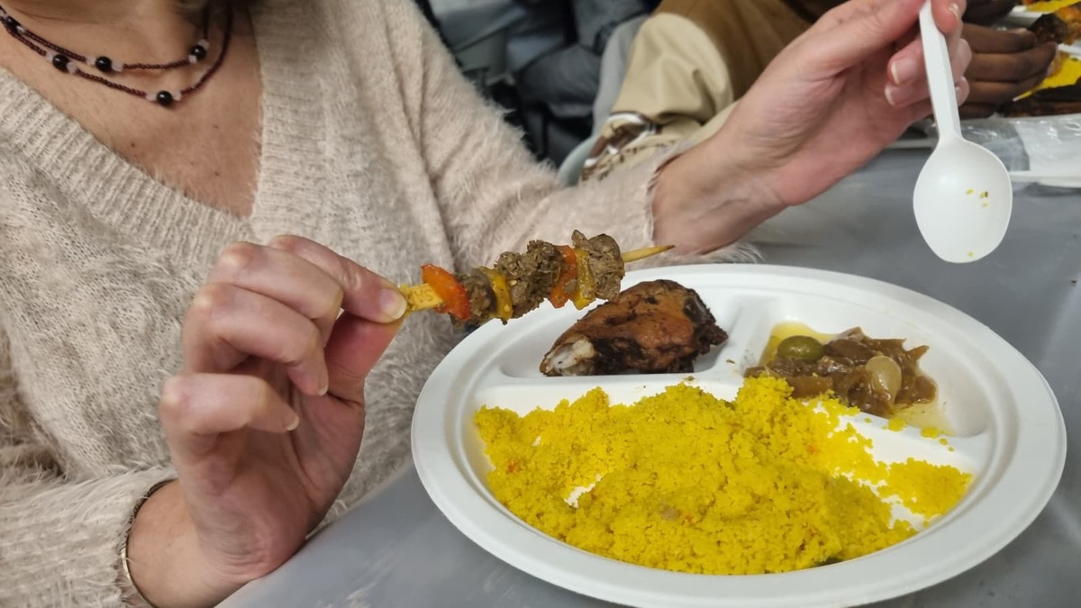 Quindi, la musica a tutto ritmo con le ricche suggestioni dell’Africa. E poi la cena con specialità tipiche a base di pollo, verdure, riso e cous cous, fino alla torta celebrativa. Ma che buona!