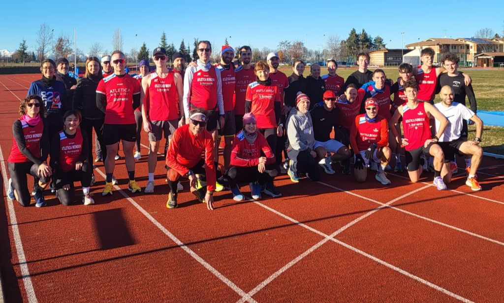 Sabato 27 dicembre sulla “Fantoni-Bonino” di Mondovì, l’Atletica Mondovì Acqua S. Bernardo ha voluto augurarsi buone feste nel modo che preferisce: correndo. Il classico 5.000 di Natale – un allenamento collettivo aperto a tutti - è stato molto partecipato con tanti atleti e simpatizzanti (tra cui alcuni genitori) che si sono messi alla prova. Davanti a tutti è arrivato il 16enne Giorgio Comino, tirato e stimolato nelle varie tornate dal compagno e coach, Michele Aimo (secondo a 3”) che ha chiuso in 15’47”: crono ampiamente sotto il proprio p.b. (anche se ovviamente non valido a fini statistici) e un ottimo test in vista della imminente stagione del cross. Alle loro spalle la new entry Gabriele Canavese 16’47” subito davanti a Ismaele Bertola 16”52; al femminile prima la cairese Sofia Dante, altro innesto importante in vista del 2026, in 21’03 davanti a Serena Dani (23’04”) ed Adriana Sciolla (24’03”).