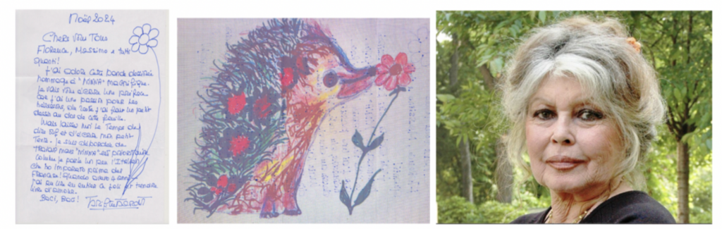 Ieri, domenica 28 dicembre, se ne va Brigitte Bardot, attrice di fama mondiale, nota non solo per il suo incredibile successo cinematografico ma anche per il suo grande amore per gli animali, che l'ha portata ad abbandonare la sua carriera precocemente per dedicarsi a loro attraverso la Fondation Brigitte Bardot. Il Centro Recupero Ricci "La Ninna" di Novello considerava Brigitte un'amica e un'anima affine che, esattamente un anno fa, aveva abbracciato la causa dei ricci e si era innamorata della realtà piemontese, mandandogli una lettera per annunciare che avrebbe scritto la prefazione per l'edizione francese del libro "75 Kg di felicità" di Massimo Vacchetta e Roberta Morucci.