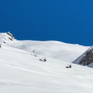 Lo spettacolo dei cervi nella neve fotografati dal rifugio Carbonetto a Demonte [VIDEO]