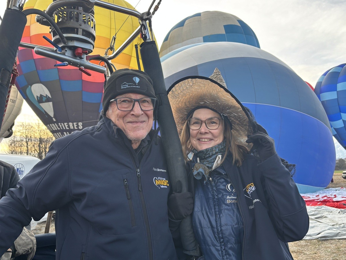 Vent'anni di matrimonio in volo per i piloti Paolo Bonanno e Nicole Maifeller che, proprio a bordo di una mongolfiera, avevano detto il loro "sì".