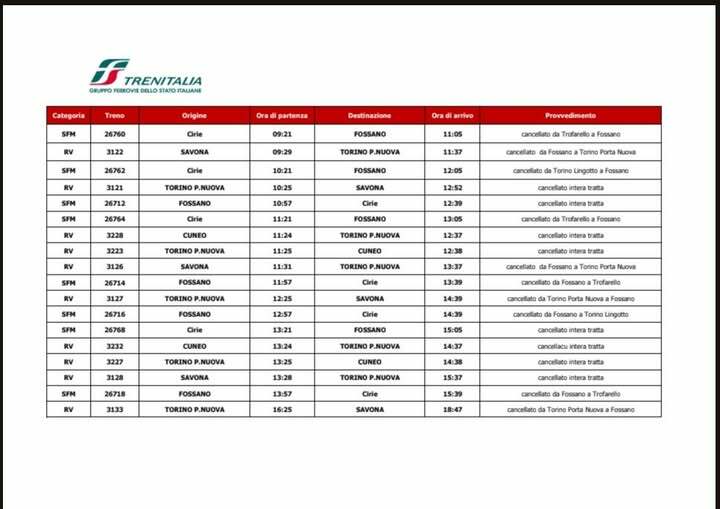 [Orari treni soppressi sulla Torino-Cuneo-Savona e Fossano-Caselle - dal profilo Facebook dei pendolari Cuneo -Torino]