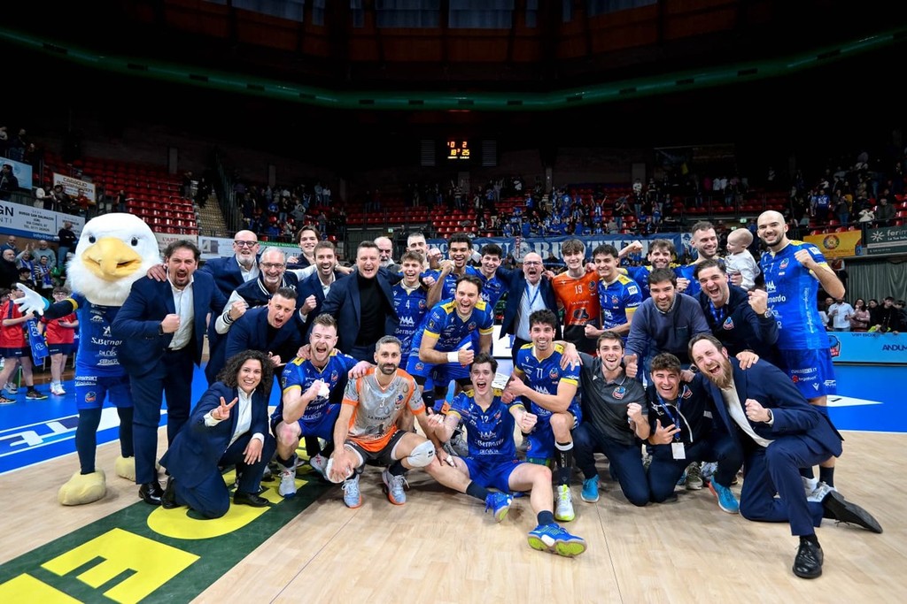 Si parte con lo striscione “DifendiamolA” esposto nella curva dei Blu Brothers. Sugli spalti sono in tremila a spingere Cavaccini e compagni in quella che, a questo punto della stagione, era probabilmente la partita più importante. Cuneo non fallisce l’appuntamento: batte Grottazzolina 3-0 (25-23, 25-23, 25-18) e compie un passo da gigante verso la permanenza in SuperLega anche per la prossima stagione. L’obiettivo era questo ed è stato raggiunto, tutto il resto è superfluo.