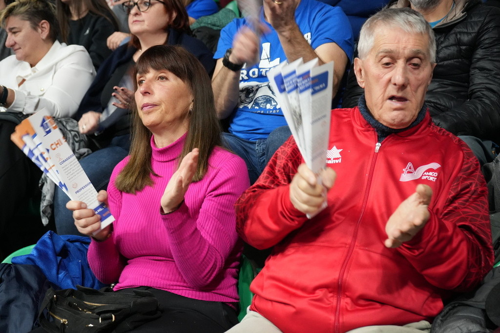 Una serata di entusiasmo e colori al palasport di San Rocco Castagnaretta, dove la MA Acqua S.Bernardo Cuneo supera Grottazzolina con un netto 3-0. La nostra fotogallery racconta il match dal punto di vista del pubblico, tra cori, bandiere ed emozioni sugli spalti.