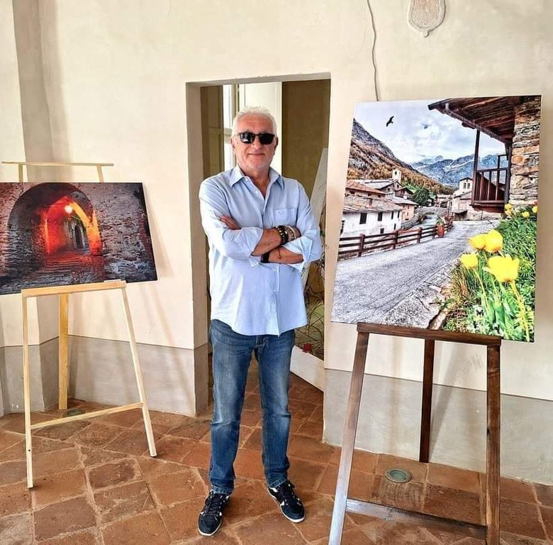 (Gianpiero Ferrigno in una mostra fotografica con le sue fotografie dedicate alla valle Varaita)