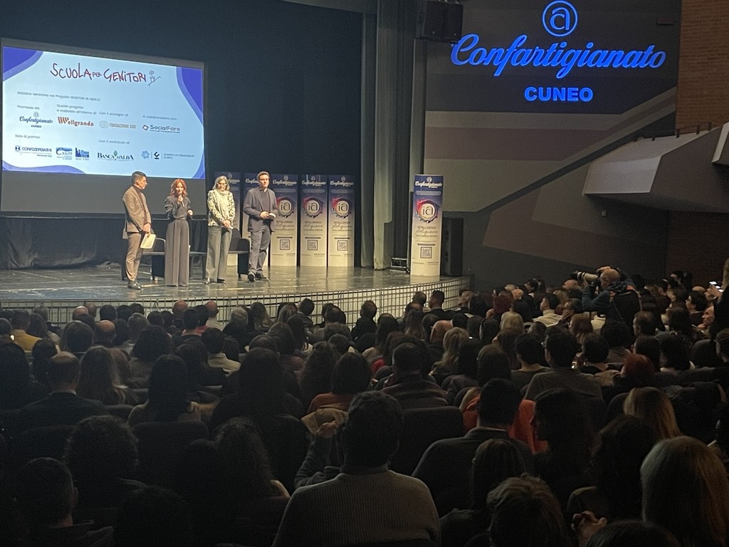 Ha registrato la sala gremita e un’attenzione partecipe il primo, attesissimo appuntamento della seconda edizione della “Scuola per Genitori” promossa da Confartigianato Imprese Cuneo, con il sostegno di Fondazione CRC nell’ambito del progetto Wellgranda e di Banca d’Alba, che ieri sera (venerdì 16 gennaio) ha inaugurato il nuovo anno al Teatro Sociale “G. Busca” di Alba con l’incontro di Stefania Andreoli dal titolo “Tra Boomer e Generazione Alpha. Un gap culturale da colmare di nuovi significati”.
