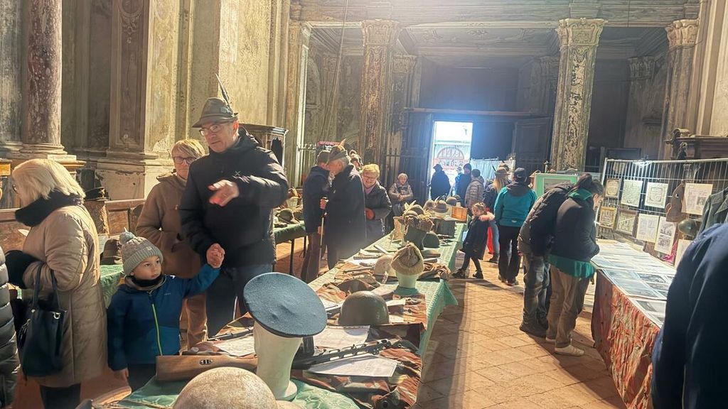 Il momento centrale si è spostato poi nella splendida cornice della Chiesa di Santa Maria, dove è stata inaugurata la mostra del Cappello Alpino e l’esposizione di documenti e cimeli, curata da Giorgio Gonella e dal Memoriale della Cuneense di Cuneo, rappresentato dal presidente Aldo Meinero.