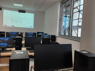 Le aule e i laboratori didattici sono ripartiti quindi su quattro livelli: al -1 gli spazi di biologia e chimica, mentre al piano terra ci sono quelli di fisica, elettrotecnica e il laboratorio Volta.