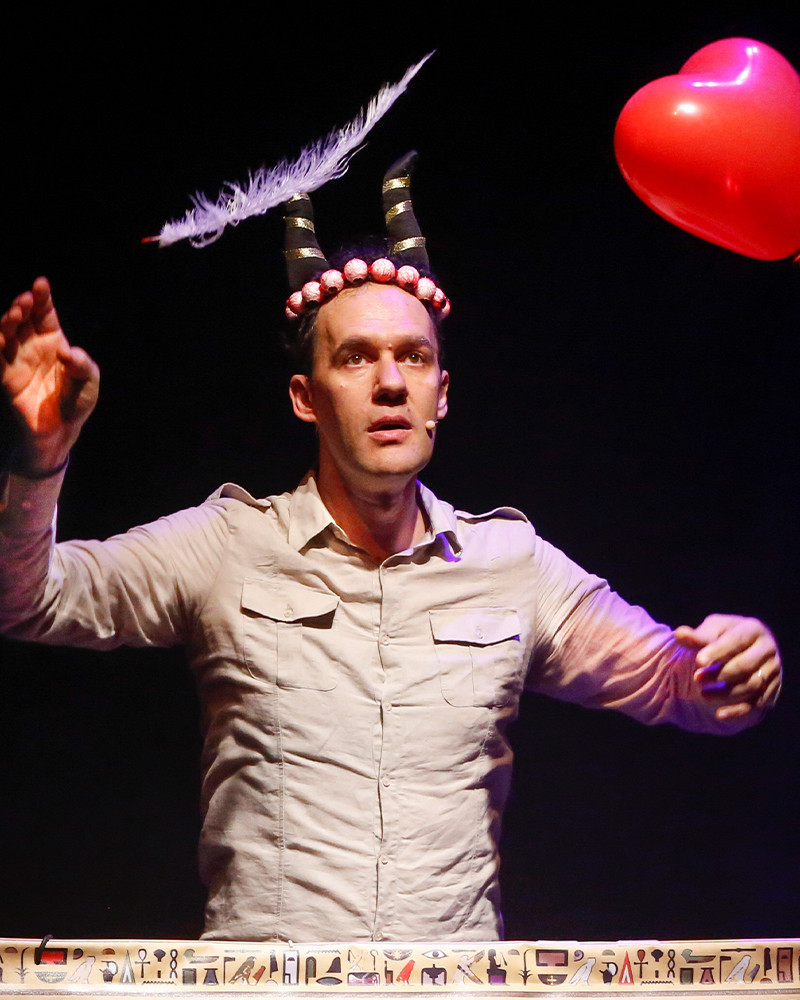 In scena soltanto una grande mappa dell’Egitto e 51 carte-gioco: strumenti essenziali per scegliere il percorso, orientarsi lungo il Nilo e ricreare momenti di vita quotidiana. Com’era una classe di piccoli Egizi? Cosa mangiavano? Perché la birra era la loro bevanda preferita? Cos’è davvero la Sfinge? E come si realizza una mummia? Domande e curiosità che trovano risposta grazie a uno spettacolo interattivo, che cambia ogni volta in base alle scelte del pubblico. Con il suo stile brillante e coinvolgente, Francesco Giorda costruisce un vero e proprio gioco teatrale che diventa esplorazione, meraviglia e conoscenza, trasformando il teatro in uno spazio di partecipazione attiva, dove bambini e adulti imparano insieme.