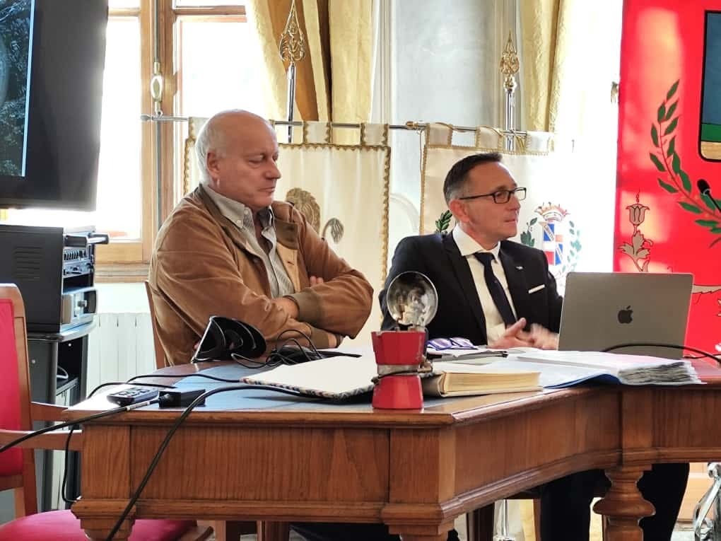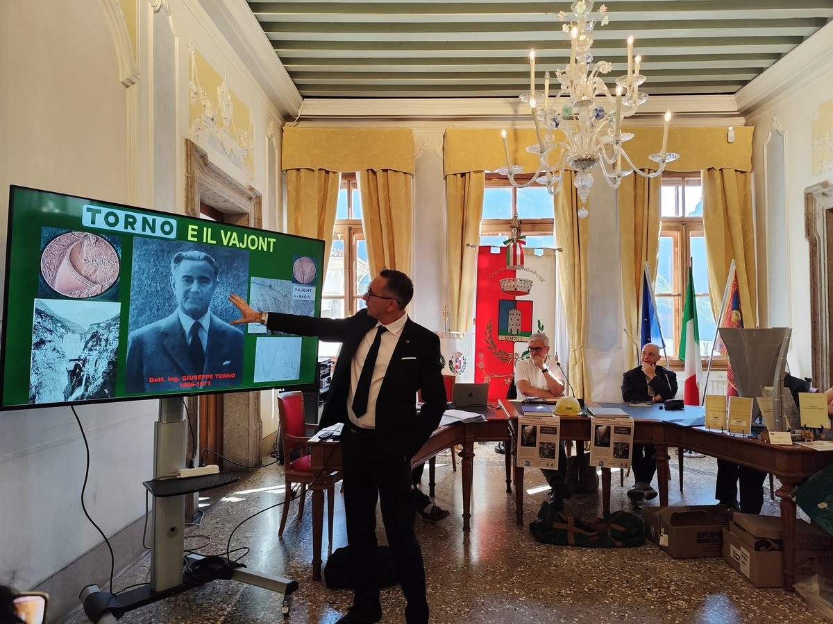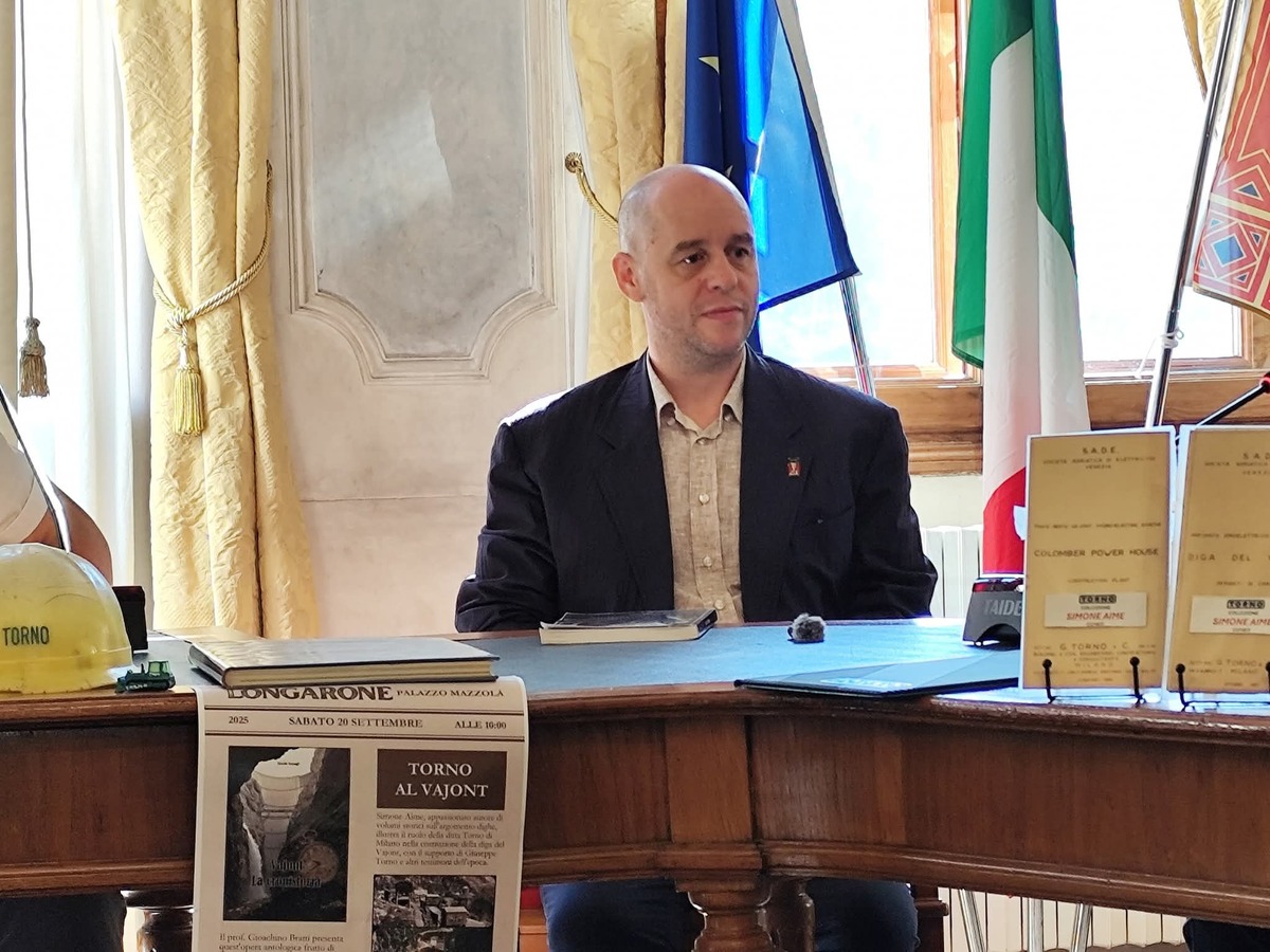 [Simone Aime presenta la Torno al Vajont in Municipio a Longarone]