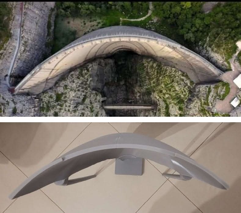 "Grazie alla presenza on line dei documenti processuali - ci spieda Davide Serpagli - , che ho usato per la stesura del mio libro sulla cronistoria del Vajont dal titolo “Vajont la cronistoria” (ed. Youcanprint, 2024 ), ho potuto avere accesso anche ai progetti tecnici originali della SADE. Questi non erano propedeutici per il libro ma essendo un appassionato dell’argomento li ho ugualmente scaricati per averli a disposizione. Sapevo dell’idea di Simone di realizzare i modellini della diga ma un giorno mi disse che uno non si riusciva a realizzare in quanto mancavano le misure degli archi alle diverse quote della struttura. Quelle misure io le avevo ed erano quelle che avevo scaricato dalla documentazione processuale, gli dissi di attendere 10 minuti senza dargli nessuna motivazione e gli inviai il materiale. Poco dopo con grande entusiasmo Simone mi chiamò dicendomi che era proprio quello che serviva a Federico per riuscire a sviluppare il progetto. Con quelle misure si è ottenuto il disegno identico alla doppia curvatura caratteristica della struttura.