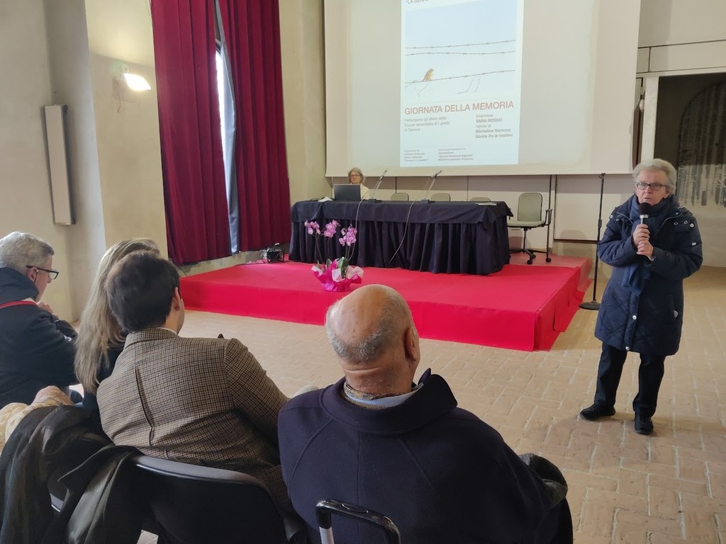 Dopo una breve sosta accanto alla targa e all’albero che il Comune di Govone collocò nel parco del castello nel 2017, studenti e ospiti si sono ritrovati nel salone “La Serra”, dove sono state evocate le terribili giornate delle persecuzioni naziste contro gli ebrei e ricordata la bellissima figura di Michelina Saracco, proprietaria con il marito di un servizio di autobus, che con grande coraggio salvò in quei giorni dalla deportazione alcuni membri della famiglia di Vittorio Dan Segre, nascondendoli nella propria abitazione.