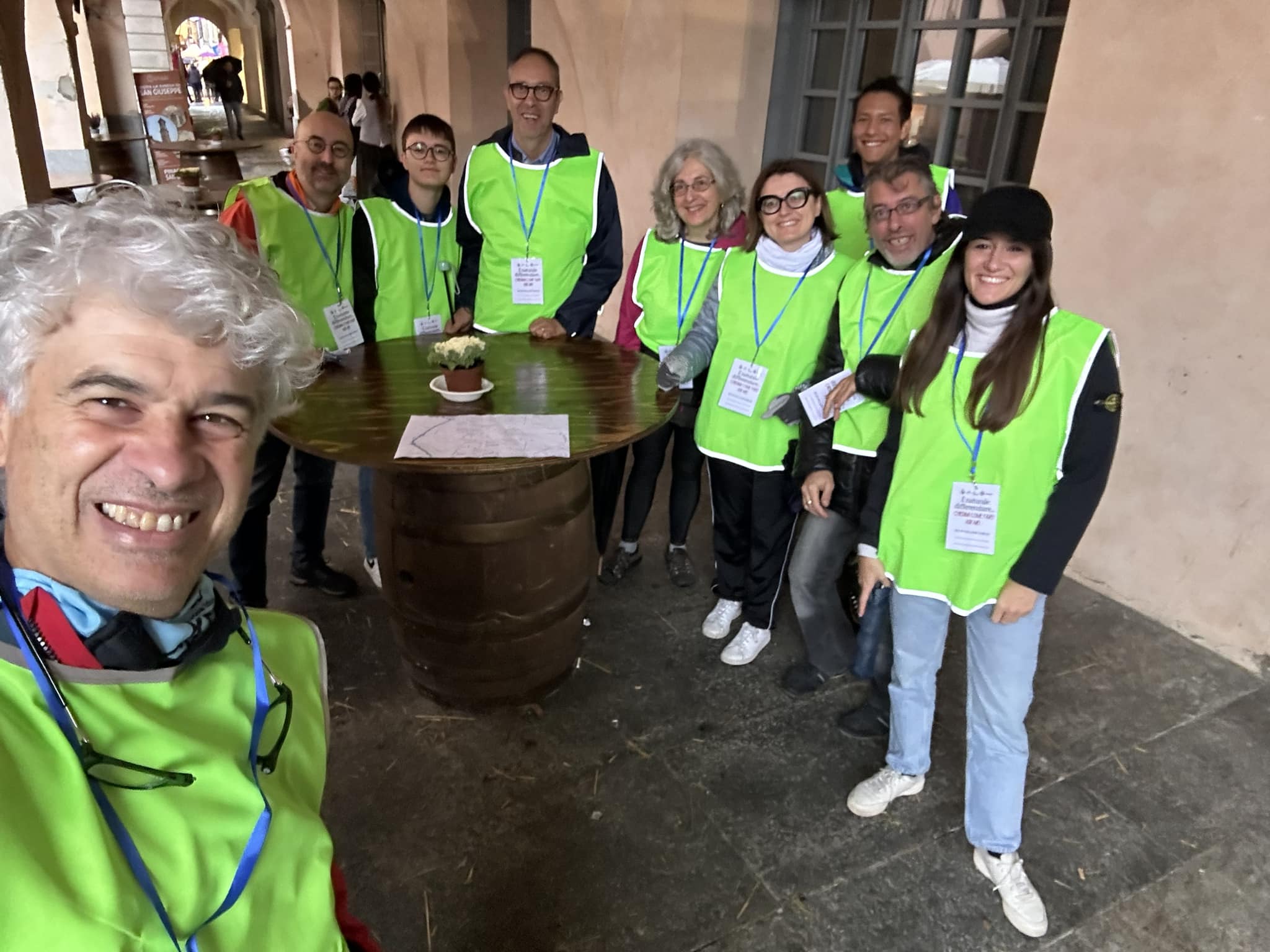 [L'assessore Roberto Cavallo con un gruppo di eco-volontari, attivatisi come supporto al servizio di raccolta durante le grandi manifestazioni cittadine]
