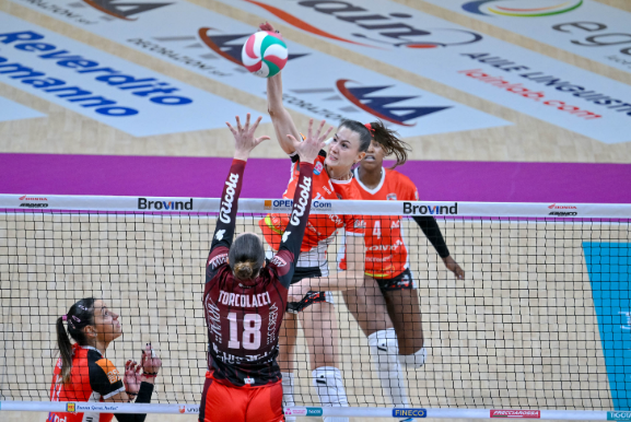 Premiata MVP del match Melanie Parra, autrice di 14 punti, di cui 1 ace e 3 muri. In doppia cifra anche Gennari, 12, e Torcolacci, 16, oltre che a una super prestazione di Seki in regia. Per Cuneo top scorer Diop a quota 9, seguita da Koulisiani a 7.