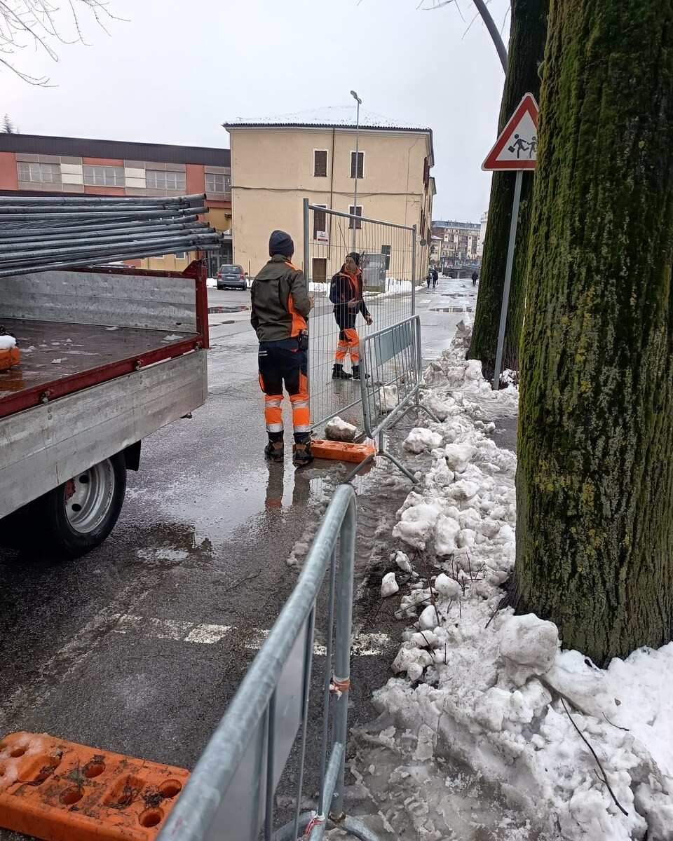 La zona, proprio a fianco delle scuole medie, è stata transennata per motivi di sicurezza ed è stato chiuso al transito pedonale l'intero marciapiede.