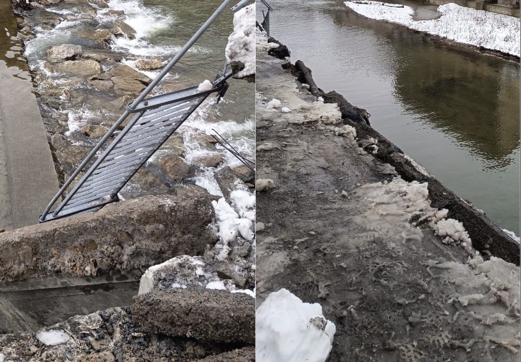 Saranno le verifiche da parte dell'ufficio tecnico comunale a individuare le cause che nella giornata di oggi, martedì 3 febbraio, hanno portato al crollo di una porzione di marciapiede lungo il torrente Cevetta.