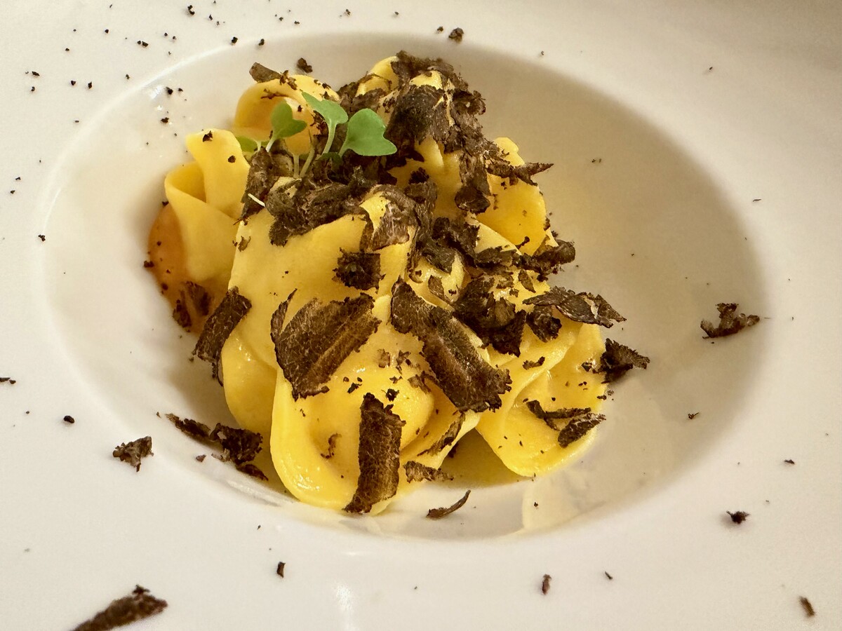 Ottimo anche il Tortello ripieno di Toumin del Mel e patate di mele su vellutata di zucca confit e tartufo nero pregiato, giusto nello spessore della pasta e connotato da un’apprezzabile armonia complessiva di gusto.
