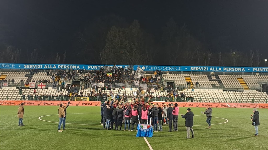 I “mandrogni” hanno terminato il primo tempo avanti 2-0, grazie alle reti del solito Diop (29’) e di Cargiolli (45’+1). A inizio ripresa i biancorossi hanno riaperto il match con il rigore di Federico Nacci (47’). Infine gli alessandrini hanno chiuso la pratica con il sigillo di Morganti (67’).