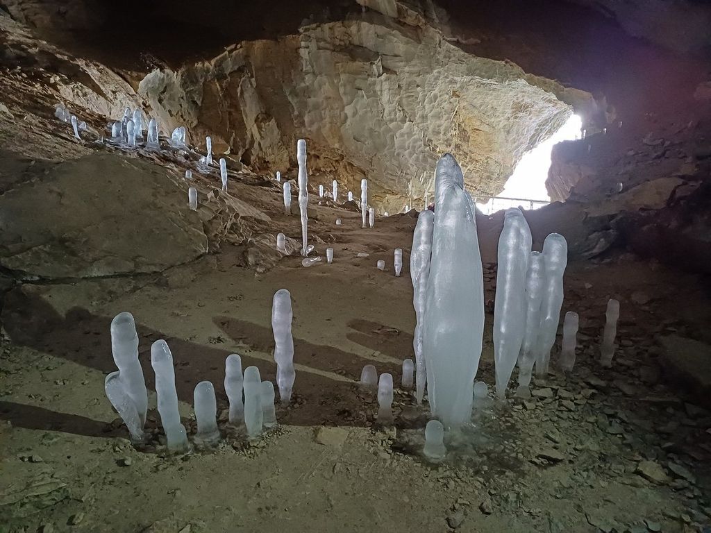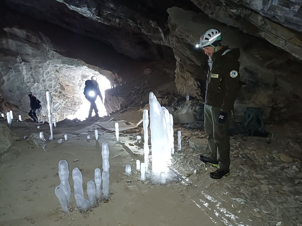 "Quello che si è presentato davanti ai nostri tecnici impegnati nel monitoraggio invernale dei pipistrelli in letargo nella grotta del Rio Martino, a Crissolo, è un effimero spettacolo di bellezza: negli ambienti della grotta si sono formate le "stalagmiti" di puro ghiaccio".