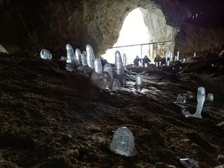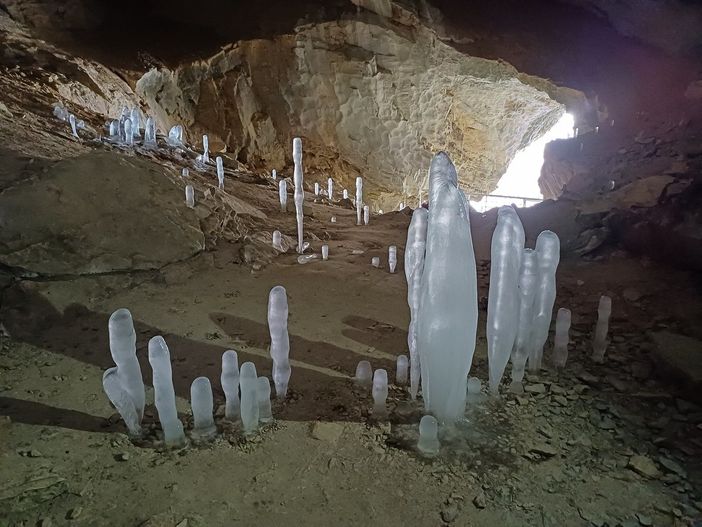 Si tratta di formazioni naturali fatte non di calcare, ma solo di acqua che, goccia dopo goccia, complice il grande freddo di queste ultime settimane, cadendo dall'alto ha creato queste magiche forme.