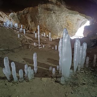 Stalagmiti di ghiaccio nella grotta di Rio Martino a Crissolo, dove la natura dà spettacolo