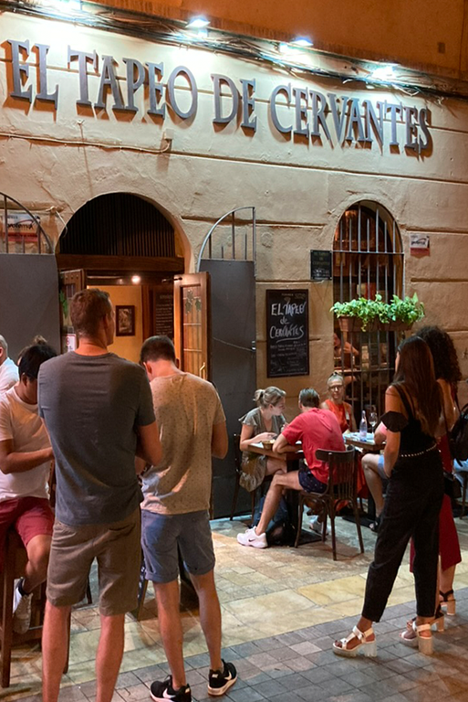Non sono ristoranti nel senso classico, né semplici bar. Sono luoghi ibridi, spesso piccoli e rumorosi, dove si mangia in compagnia e in tavolini stretti. Si entra senza programmi, si ordina poco alla volta, si condivide. I menu sono brevi, scritti a mano o raccontati a voce, e cambiano poco. Le tapas sono quelle tradizionali: tortillas, crocchette, albóndigas al sugo, ensaladilla, papas bravas e altre. Qui non si viene per “cenare”, ma per assaggiare la città, boccone dopo boccone, seguendo il ritmo di chi ci vive.