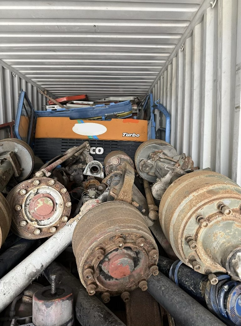 Veniva pertanto svolto un controllo congiunto all’esito del quale il personale operante rinveniva, oltre alla merce regolarmente dichiarata all’Adm in parti di veicoli e pezzi di ricambio bonificati, anche notevoli quantità di rifiuti quali manicotti in gomma, parafanghi, voltanti di camion, snorkel e parti di veicoli classificabili come rifiuti.