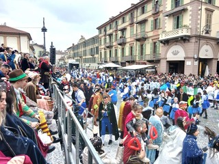 La pioggia che ha fatto aprire gli ombrelli solo sul passaggio dell’ultimo carro, ha lasciato campo libero alla manifestazione (commentata con brio da Sonia De Castelli) con tutto il carico di colori, l'esplosione di coriandoli e stelle filanti, la voglia di esserci delle maschere del territorio, in promis quelle di Saluzzo: Castellana, Ciaferlin e seguito. Sono state particolarmente numerose quest'anno, come elevato è stato il numero di danzatori e performer dei gruppi coreografici. Oltre 2.000 complessivamente e di ogni età.