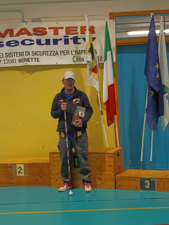 Oro per l'ottimo Maurizio Blangero Maurizio, alla sua prima gara con Arco Compound, nella categoria Visually Impaired 1-Unica.