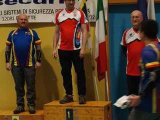 Oro per l'ottimo Maurizio Blangero Maurizio, alla sua prima gara con Arco Compound, nella categoria Visually Impaired 1-Unica.