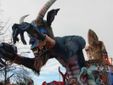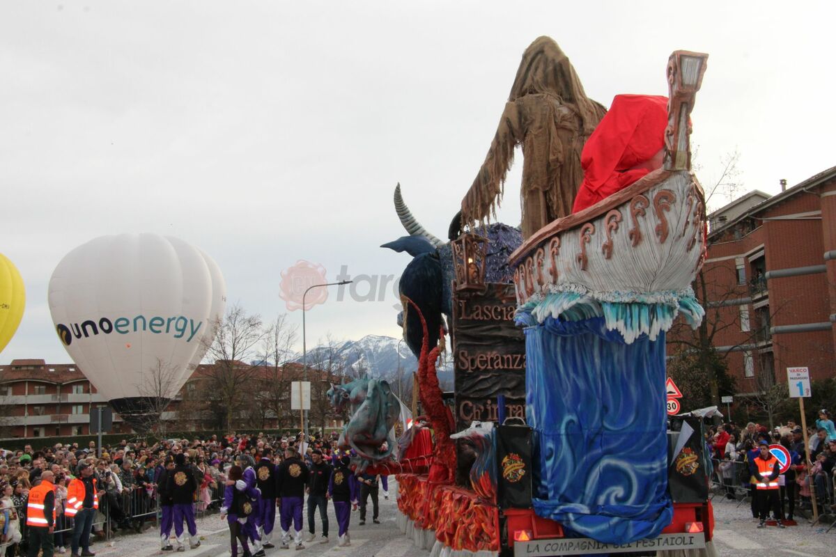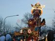 Nella categoria Carri allegorici, il primo premio è stato assegnato ex-aequo a Scalenghe-I Desbela con “Appesi a un filo” e a Mondovì-Fiori di Bambù con “La danza delle coscienze”, due opere capaci di colpire la giuria per forza espressiva e messaggio trasmesso. Da segnalare la folta partecipazione di Scalenghe, da tempo affezionata a Mondovì, che ha sfilato con 650 figuranti.