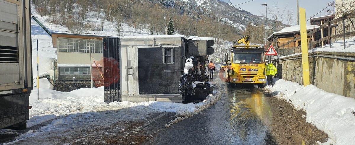 Il ribaltamento è avvenuto dopo le 4 di oggi, mentre sulla zona imperversava una fitta nevicata.