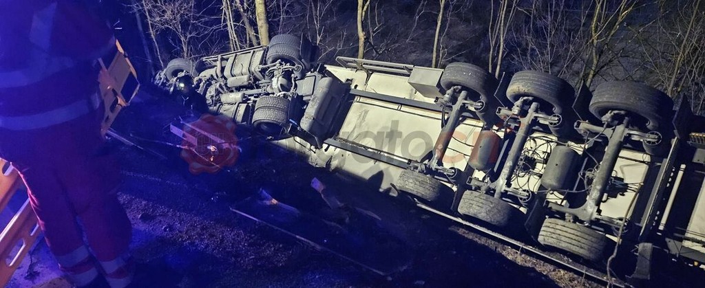 Tir si ribalta in una scarpata nei pressi di frazione Bagnulin nel comune di Demonte sulla Statale 21 del Colle della Maddalena mentre scendeva da Vinadio.