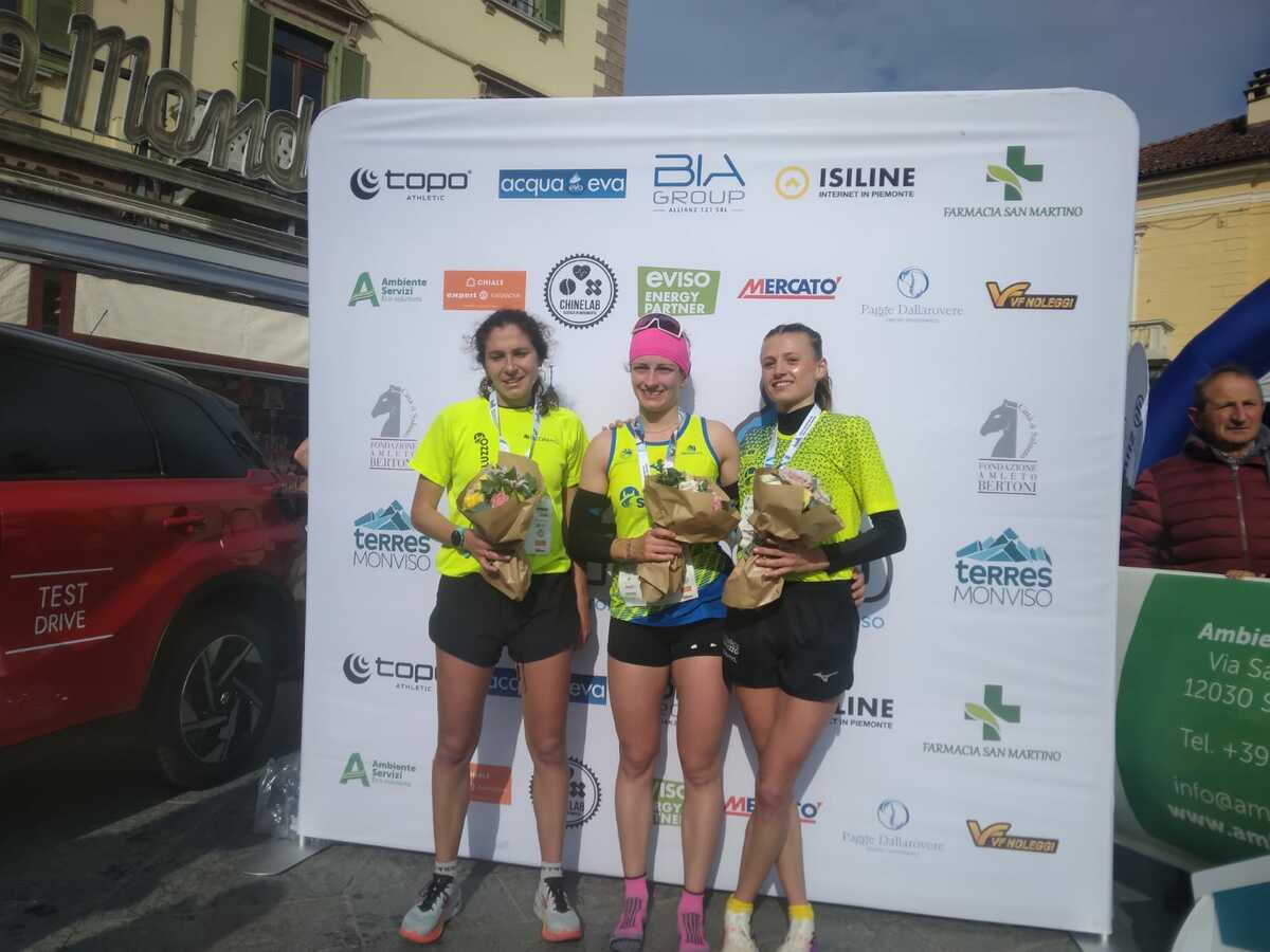 Sul podio femminile, si è imposto il magnifico terzetto della Atletica Saluzzo, come da previsione dello speaker ufficiale della Mezza del Marchesato, Giacomo Casalloni, grande conoscitore della gara e dei tantissimi partecipanti che ha presentato.